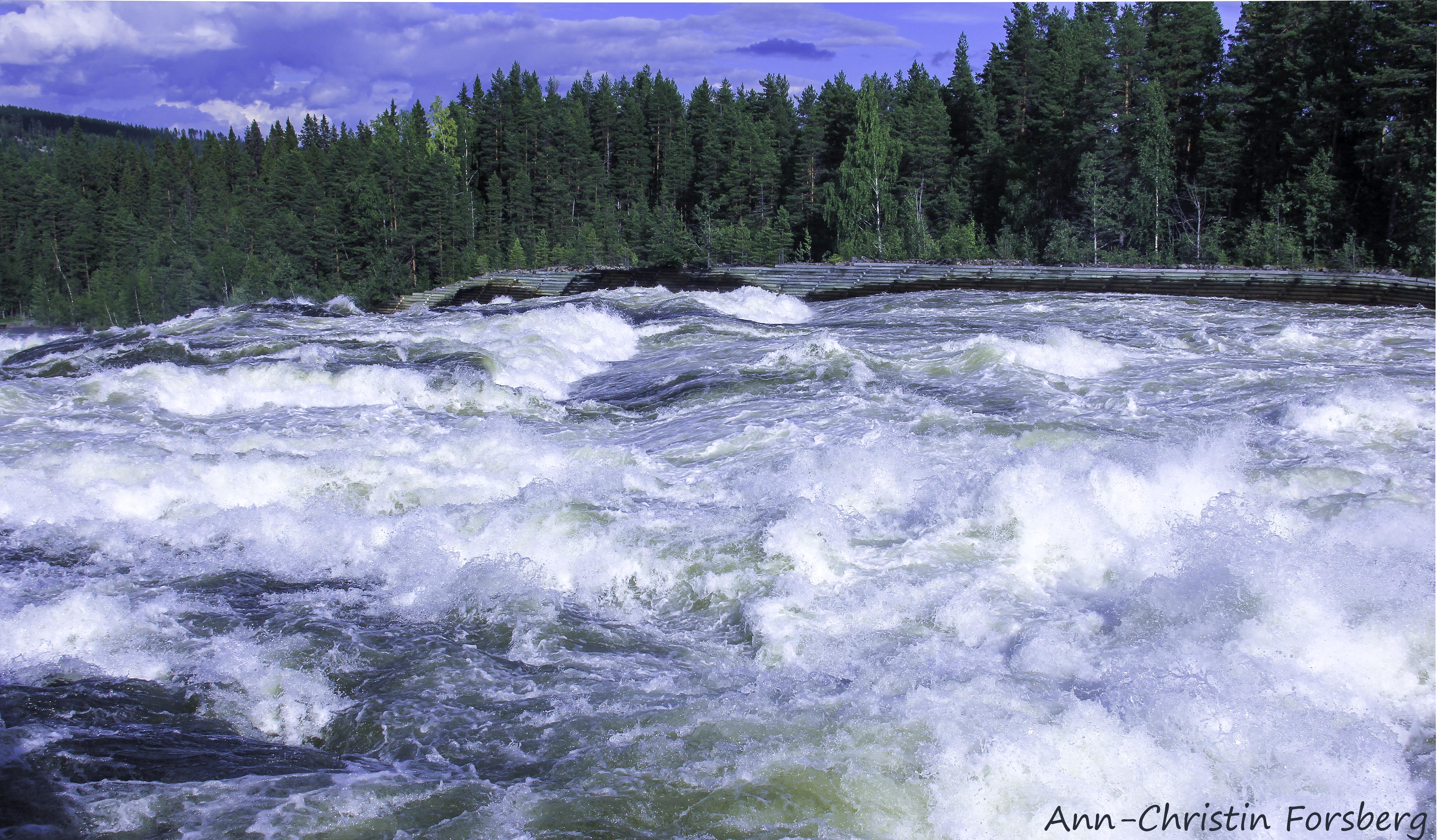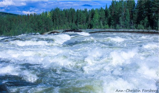 Underbar bild med härligt liv i forsen. Verkligen mäktigt. Fint också med de blå och gröna färgerna tillsammans.