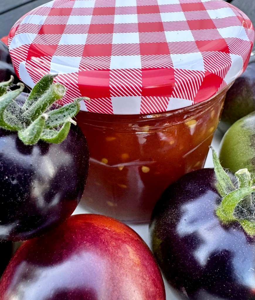 Tomatmarmeladen fick ett ”rödrutigt lock” 😉
